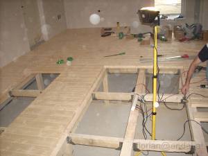 Inzwischen ist die Holzkonstruktion der Bühne fertig gestellt.