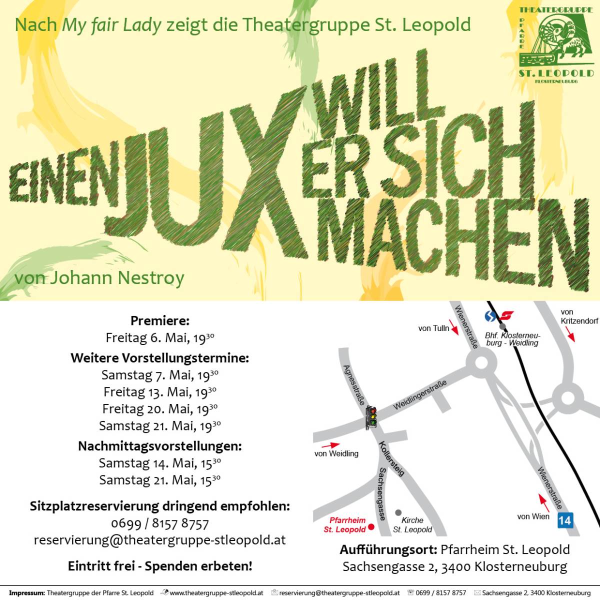 Von Freitag, 6. bis Samstag, 21. Mai 2011 präsentieren wir insgesamt 7 Mal die Posse „Einen Jux will er sich machen“ von Johann Nepomuk Nestroy.